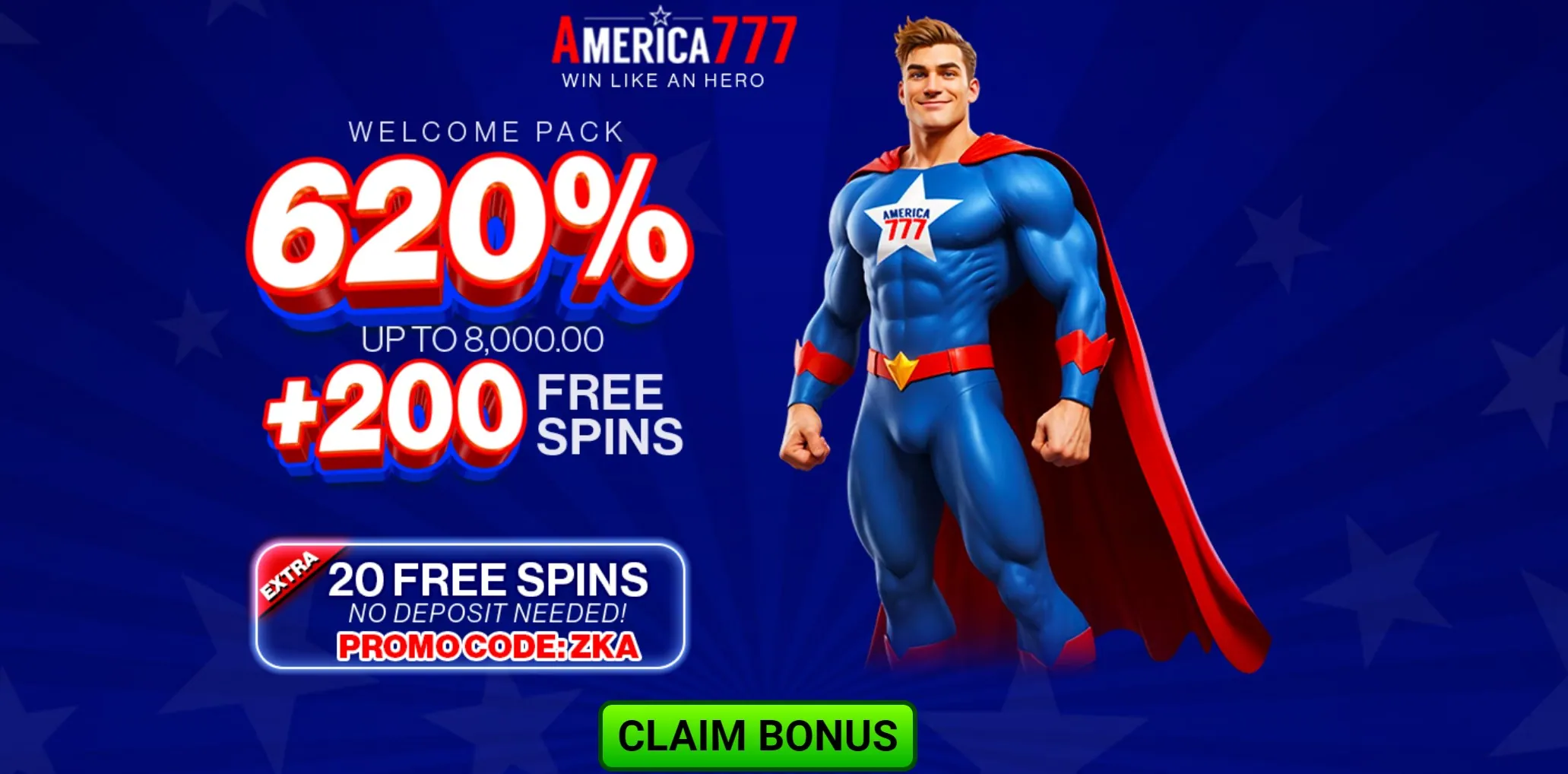 620% up to $8,000 + 200 Free Spins – an impressive welcome package. This offer requires a minimum deposit of 20 dollars and has 35x wagering requirements. The bonus consists of four parts, providing the following incentives: 200% bonus up to 1,000 dollars + 100 free spins for the first deposit, 100% bonus up to 1,000 dollars for the second deposit, 100% bonus up to 2,000 dollars for the third deposit, and 220% bonus up to 4,000 dollars + 100 extra rounds for the fourth deposit. To claim each part of the offer, you need to use the corresponding America777 promo code: BONUS1, BONUS2, BONUS3, or BONUS4. The maximum cashout for the bonus portion is 6x your deposit amount and for the free spins it is 50 dollars or the equivalent in another supported currency. Remember that the welcome package must be played through within 30 days. When requesting a withdrawal, the bonus amount will be automatically deducted. The maximum bet during the wagering period cannot exceed 5 dollars. Only one bonus is allowed per player/ account/ computer. Also, note that wagering from different games is taken into account differently: 100% for slots, keno, and scratch cards; 50% for all NetEnt or Red Tiger games; 8% for poker, roulette, blackjack, and Casino War; 2% for classic blackjack, All Aces, and Jacks or Better video poker; 0% for baccarat, craps, sic bo, progressive games, and Red Dog. This offer is not available to players from the following countries: Afghanistan, Aruba, Bonaire, Burma, Congo, Curacao, Eritrea, Ethiopia, France, Iran, Iraq, Libya, Malaysia, Myanmar, The Netherlands, North Korea, Palestine, Russia, Saba, Singapore, Somalia, Statia, St. Maarten, Sudan, Syria, United Kingdom, Yemen, and Zimbabwe. Please note that all jackpots and games with the bonus buy feature, as well as a list of several dozen of specified titles, are excluded from the eligible games for free spins. Please carefully review the list of excluded titles before using this offer.