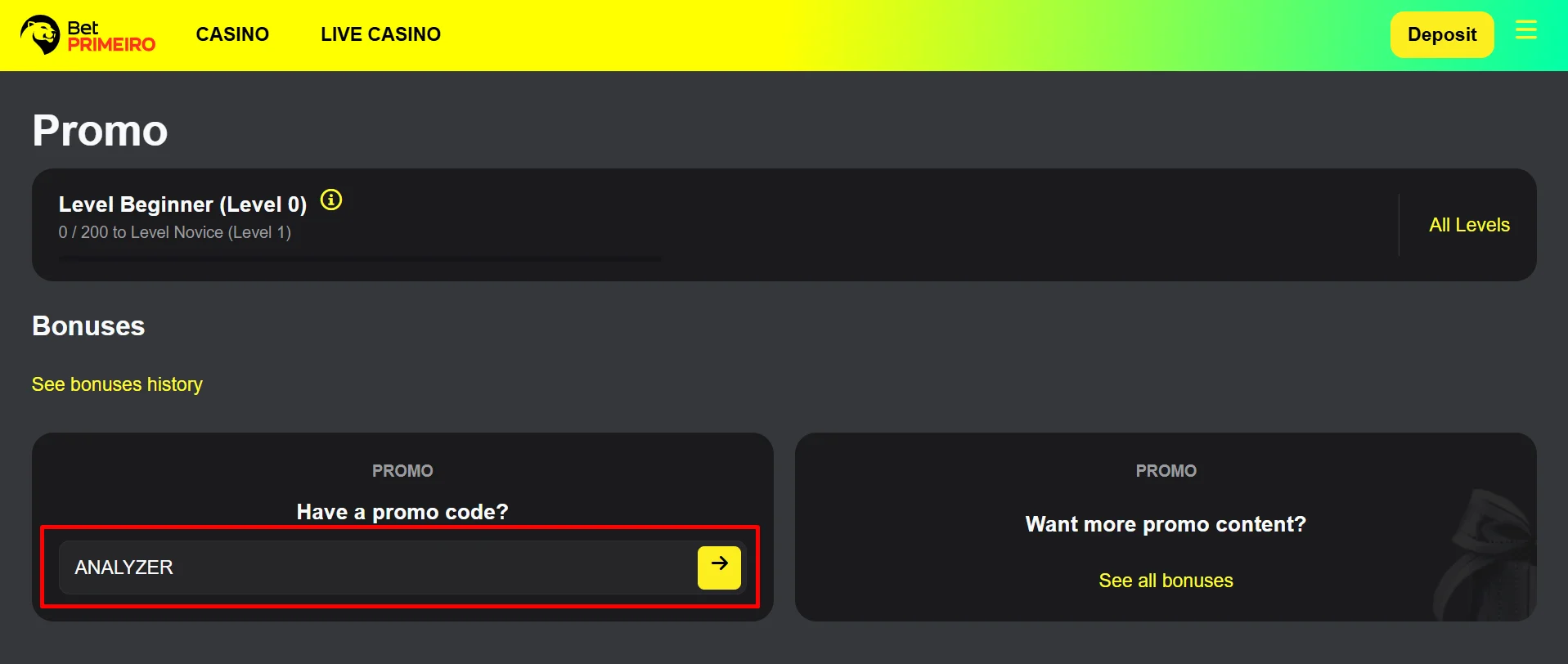 Total 0 active bonuses available