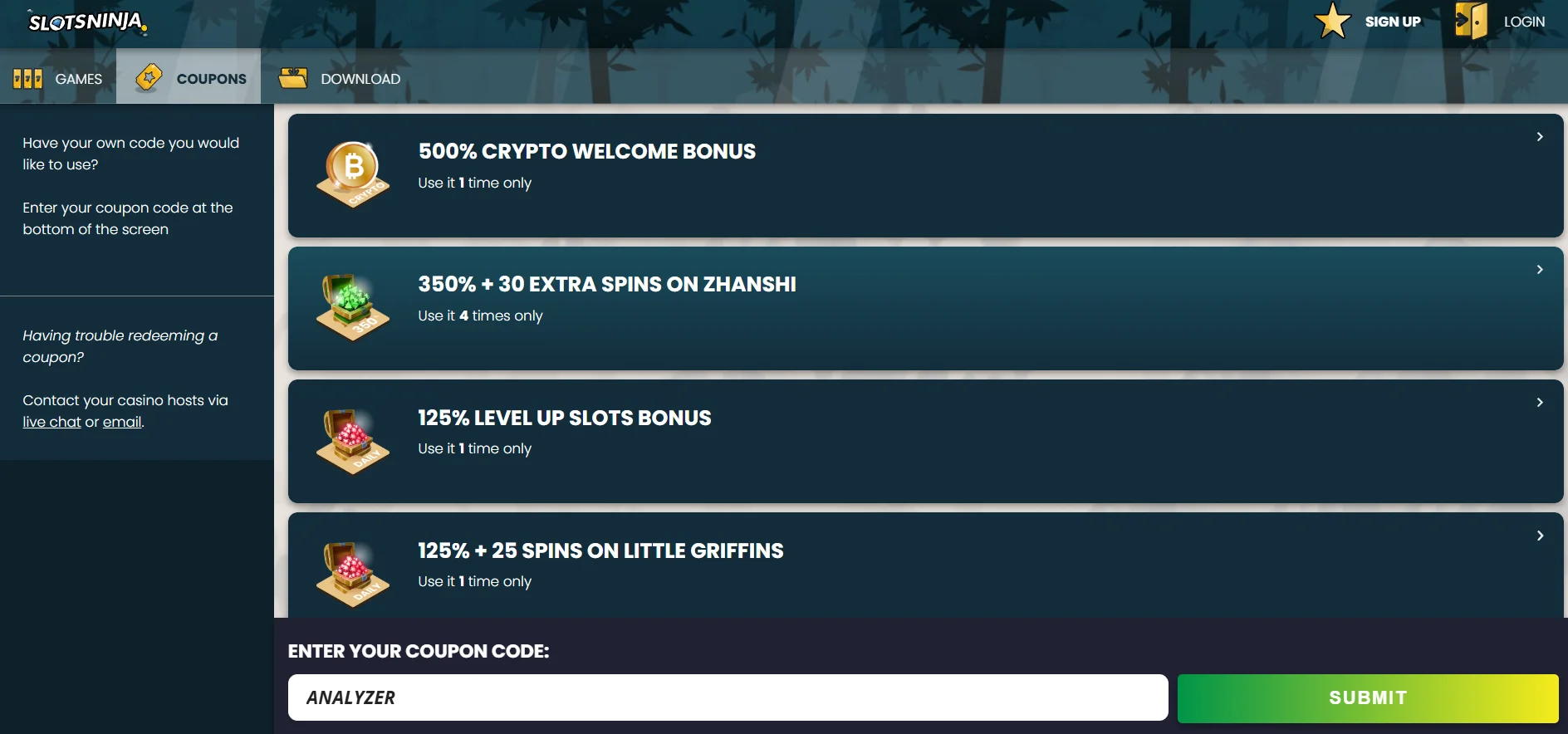 Slots Ninja no deposit bonus is your gateway to more time on the reels and a chance to discover new games without spending a dime. Whether you’re a first-time visitor or a returning player, bonuses here are designed to boost your gameplay and stretch your fun even further. From unlocking extra spins to trying out fresh titles risk-free, every offer is just a few clicks away. With so many easy-to-claim promotions, there’s always a reason to dive back in. Scroll down to get your bonus and start playing smarter, longer, and with more excitement.